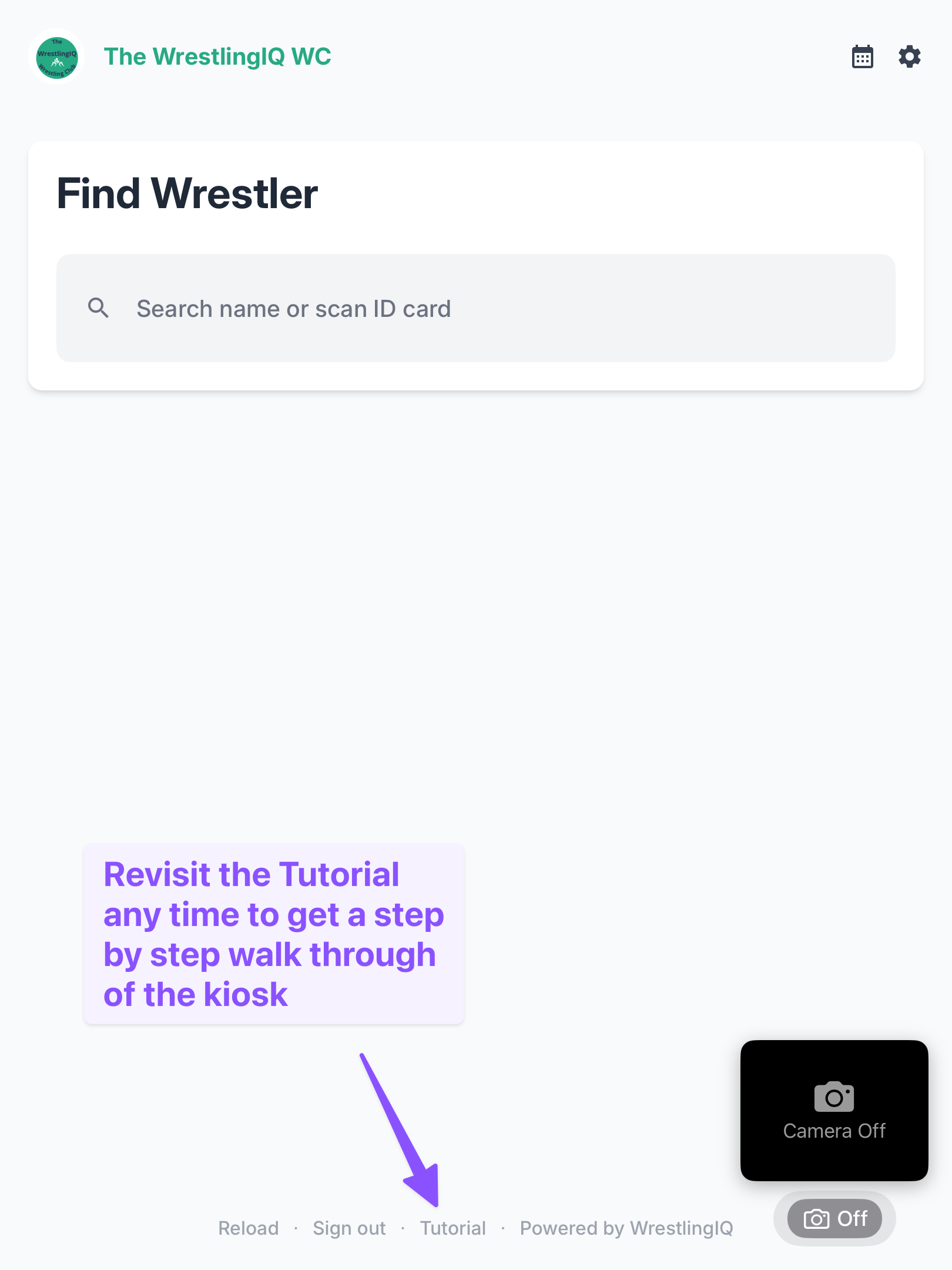 Tip: For another quick step-by-step run through of the WrestlingIQ Kiosk, you can revisit the Tutorial directly in the Kiosk app/browser at the bottom of the screen.