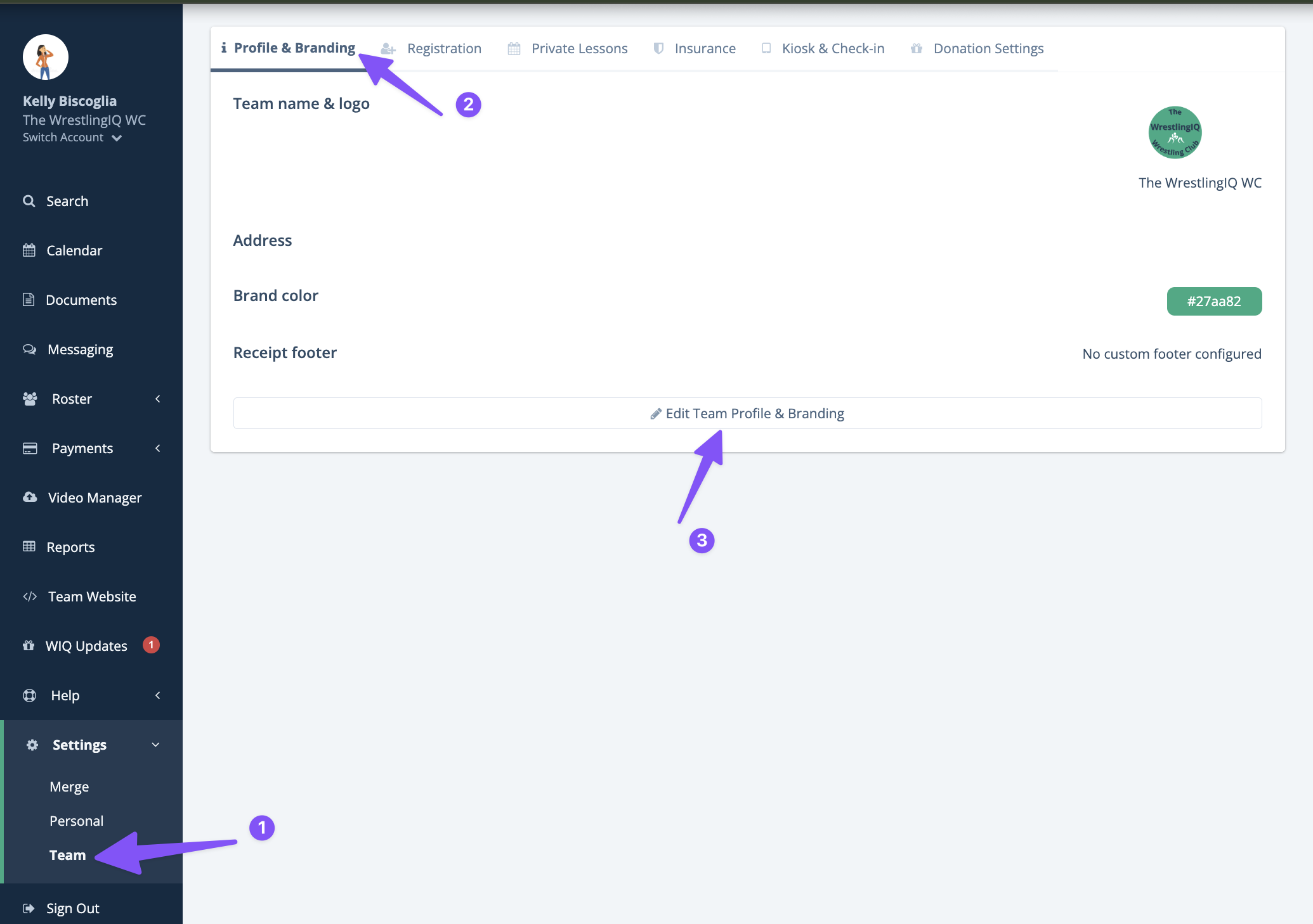 Add your team logo and colors in your WrestlingIQ team settings to brand your kiosk experience.