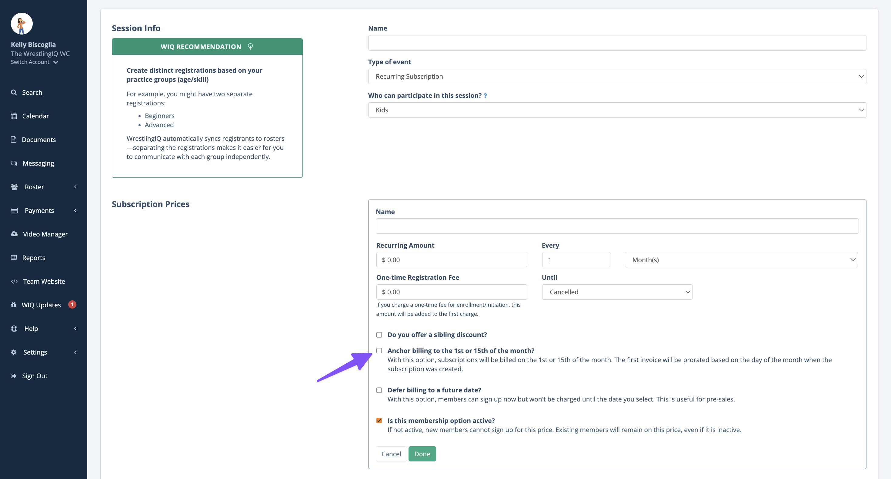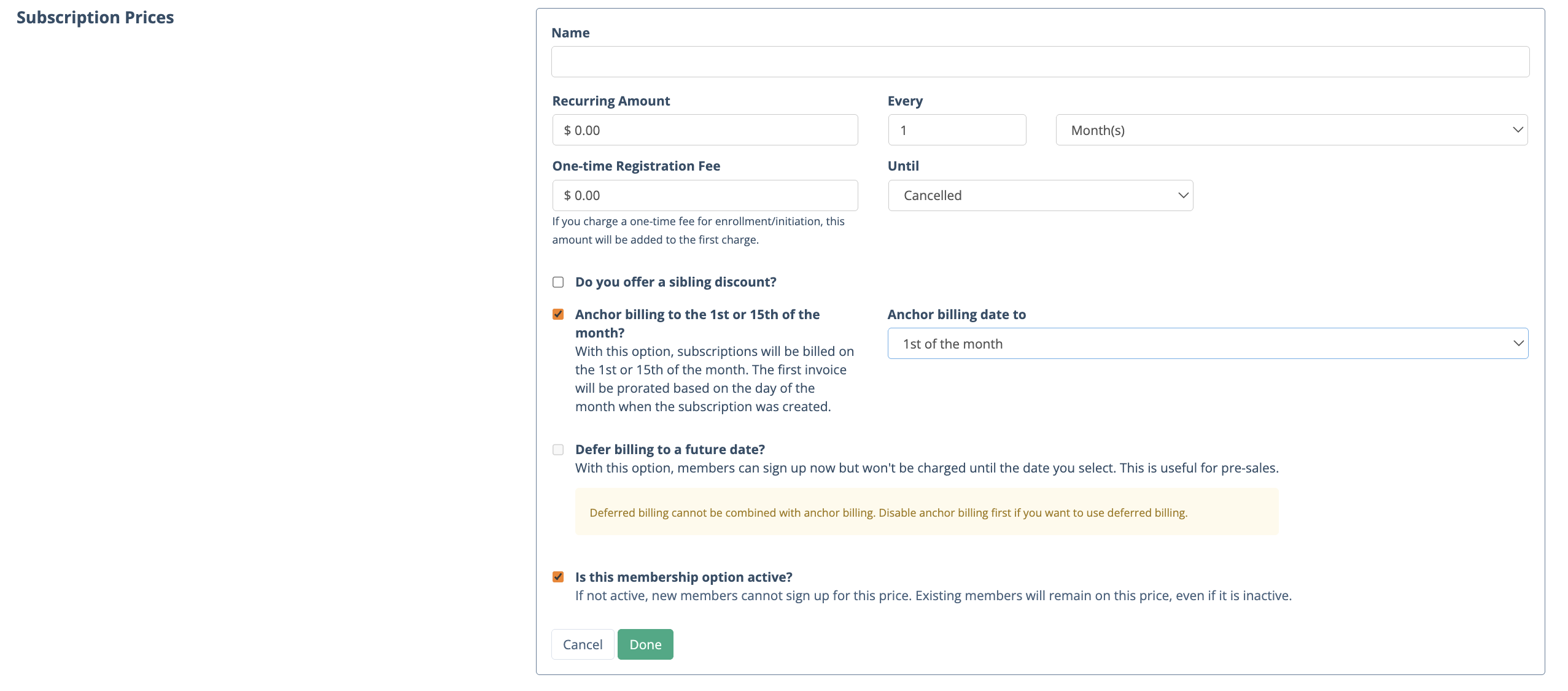 Note: Anchor dates can ONLY be applied to Recurring Subscription registration types.